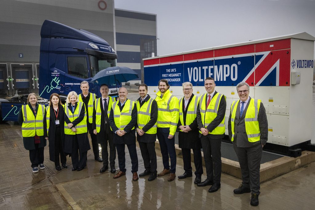Voltempo are proud to be powering a major step forward for zero-emission logistics in the UK. Today, our first live megawatt-scale electric HGV charging hub went into operation at East Midlands Gateway, supporting Kuehne+Nagel’s (K+N’s) UK overland fleet, marking a significant milestone for Voltempo and eFREIGHT2030 programme.
